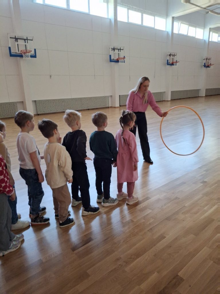 Mažieji svečiai atvyko į pažintinę ekskursiją, kurios metu turėjo galimybę susipažinti su mokyklos aplinka bei kasdieniu mokinių gyvenimu. Pirmiausia vaikai aplankė mokyklos erdves, o didžiausią įspūdį jiems paliko sporto salė. Čia jie aktyviai įsitraukė į smagias sporto estafetes, demonstravo vikrumą, greitį ir puikią nuotaiką.
