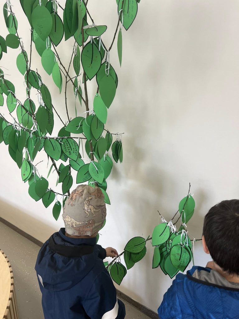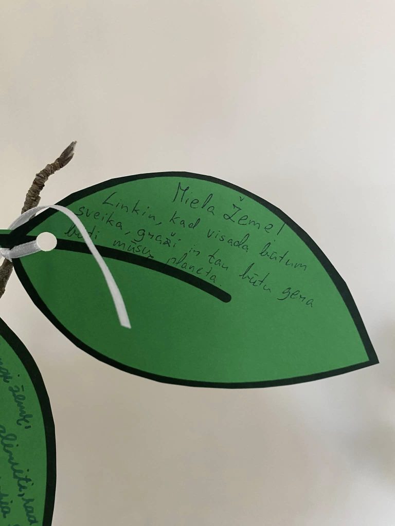 Minėdami Žemės dieną, 1–8 klasių mokiniai ir mokytojai ant lapelių surašė savo pažadus ir palinkėjimus Žemei. Kiekvienas jų – mažas, bet svarbus žingsnis, sugulęs į gyvą, augantį rūpesčio ir atsakomybės medį.
