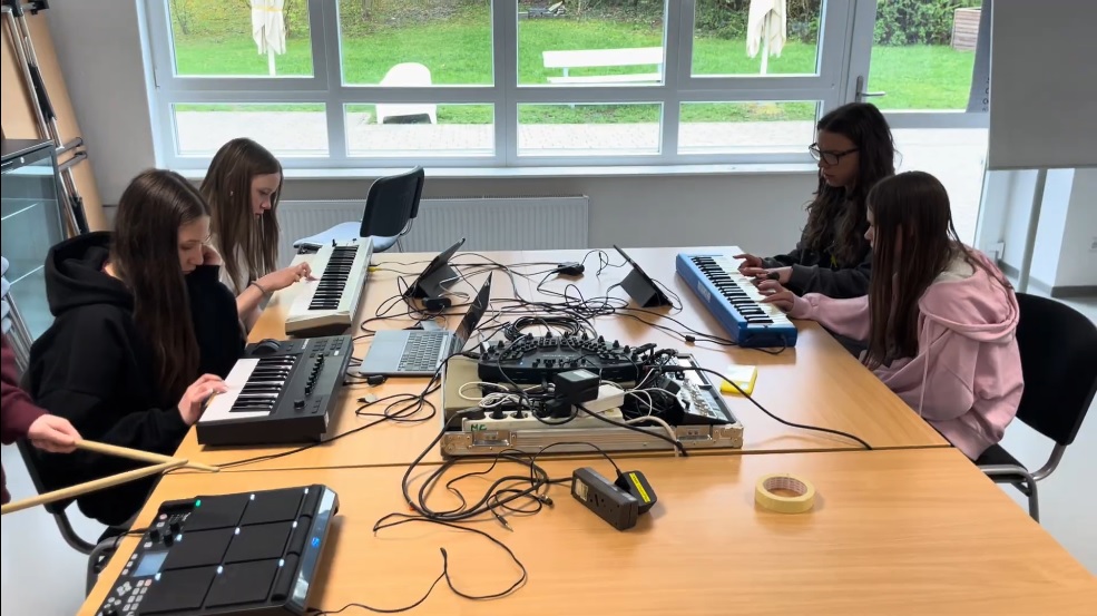 Mokiniai lankėsi „Erfurt Music Fabrik“, kur turėjo puikią galimybę patys išbandyti įvairius muzikos instrumentus: elektroninės muzikos įrangą, būgnus, elektrinę gitarą, elektrinį pianiną, bosinę gitarą ir dar daugiau!