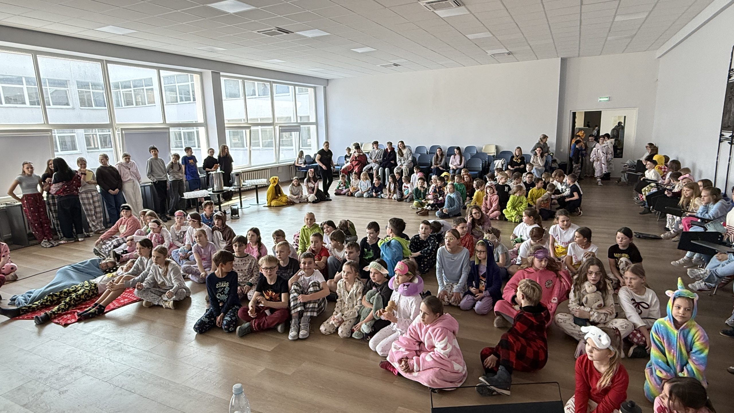 Mokiniai buvo kviečiami į mokyklą atvykti vilkint pižamas – tai ne tik sukūrė jaukią atmosferą, bet ir tapo savotišku „bilietu“ į specialų renginį mokyklos salėje. Per ilgąją pertrauką vyko smagi programa: buvo pristatyta trumpa prezentacija apie miego svarbą, organizuoti originaliausių pižamų apdovanojimai, o visi pižamomis pasipuošę mokiniai buvo pakviesti pasivaišinti šilta kakava.